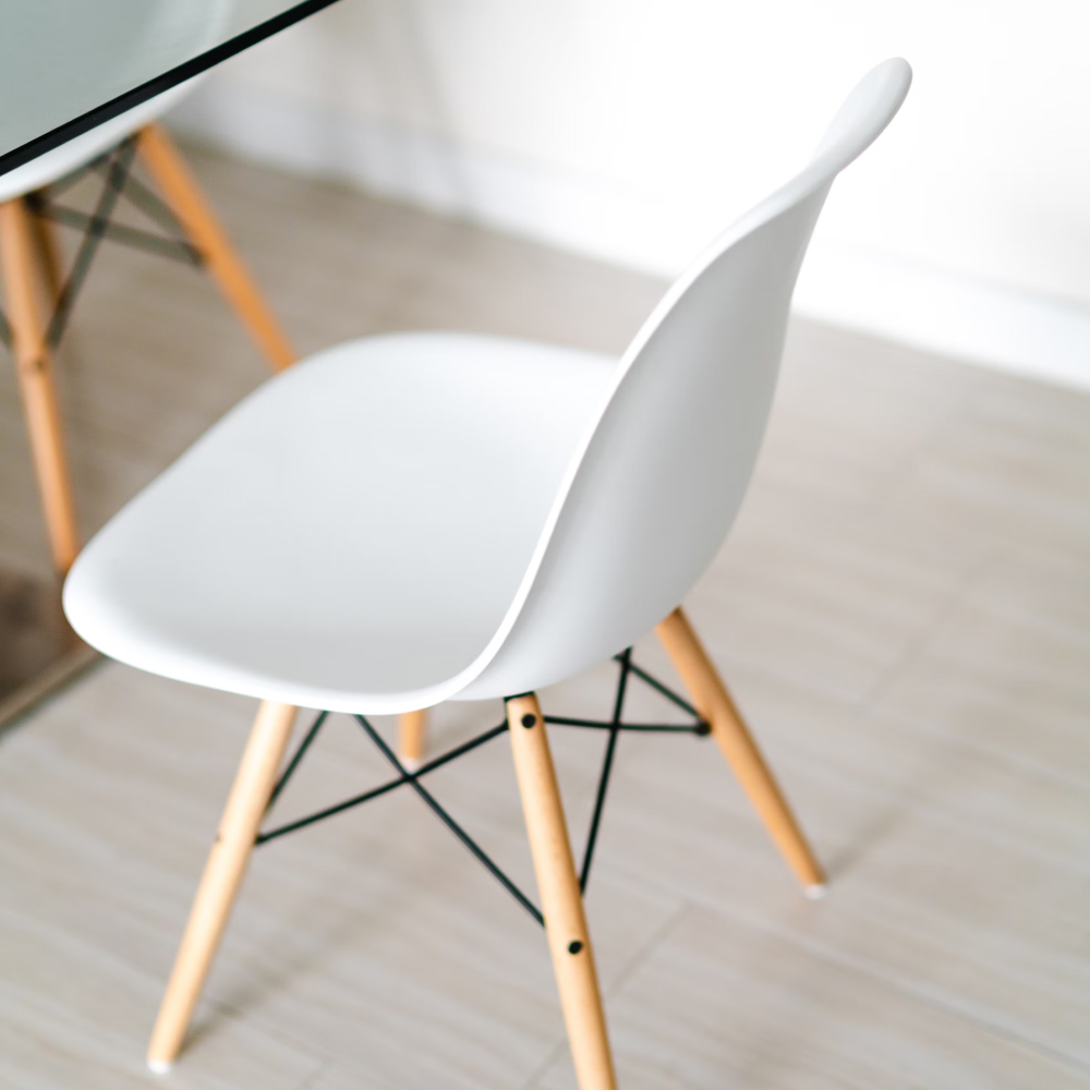 Featuring a minimalist design, this chair combines a crisp white seat and backrest with bold black armrests and leg supports for a striking contrast. The wooden legs add warmth and texture to the overall look, making it a versatile piece that can fit seamlessly into any interior design scheme.